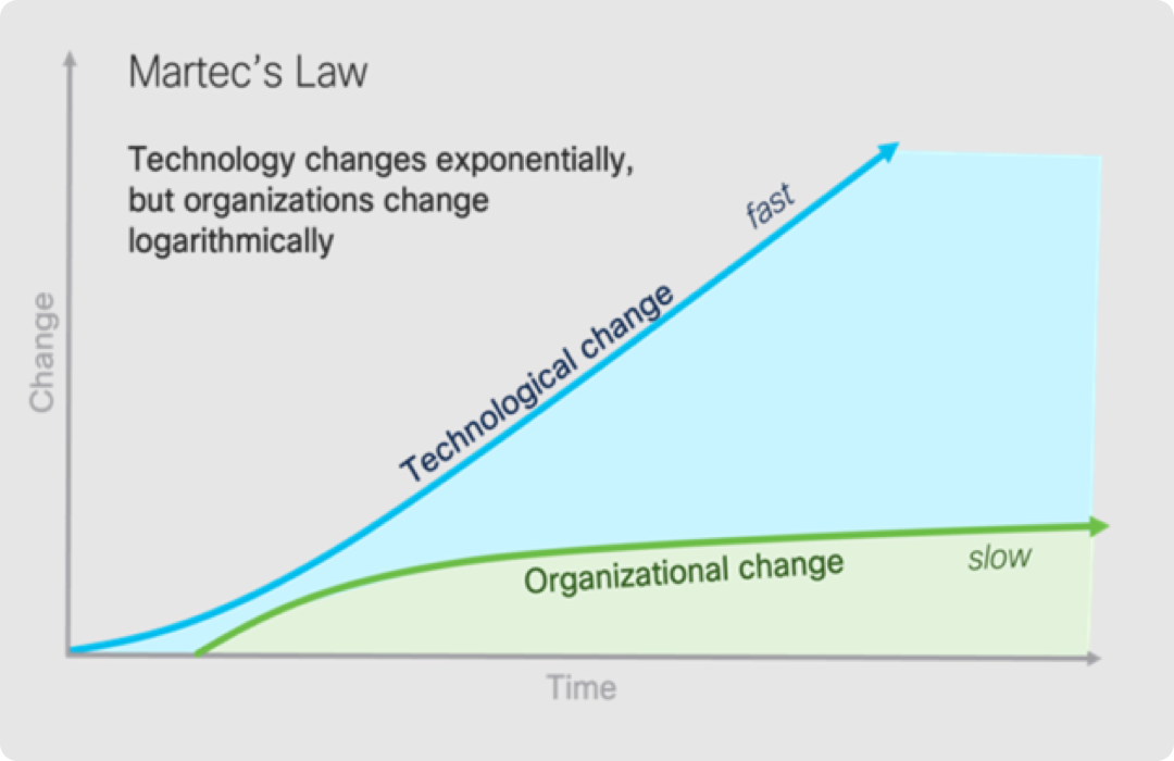 This is where Martec’s Law reminds us: technology changes exponentially, but organizations change logarithmically.